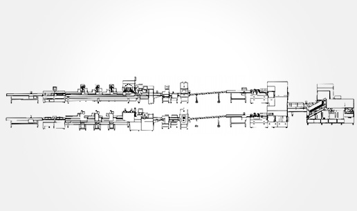 包裝段采用兩臺(tái)SE-5000A型枕包機(jī),配合兩臺(tái)高速集積器及合流裝置,實(shí)現(xiàn)一臺(tái)SE-5700A-BX枕包機(jī)完成整線的集合包包裝,分道裝置完成生產(chǎn)線單包/集合包的自由切換;裝箱段采用WDC-240型封箱主機(jī),一側(cè)配單包集積器、一側(cè)配集合包集積器,實(shí)現(xiàn)在一臺(tái)機(jī)器上完成兩種形式的自動(dòng)裝箱。